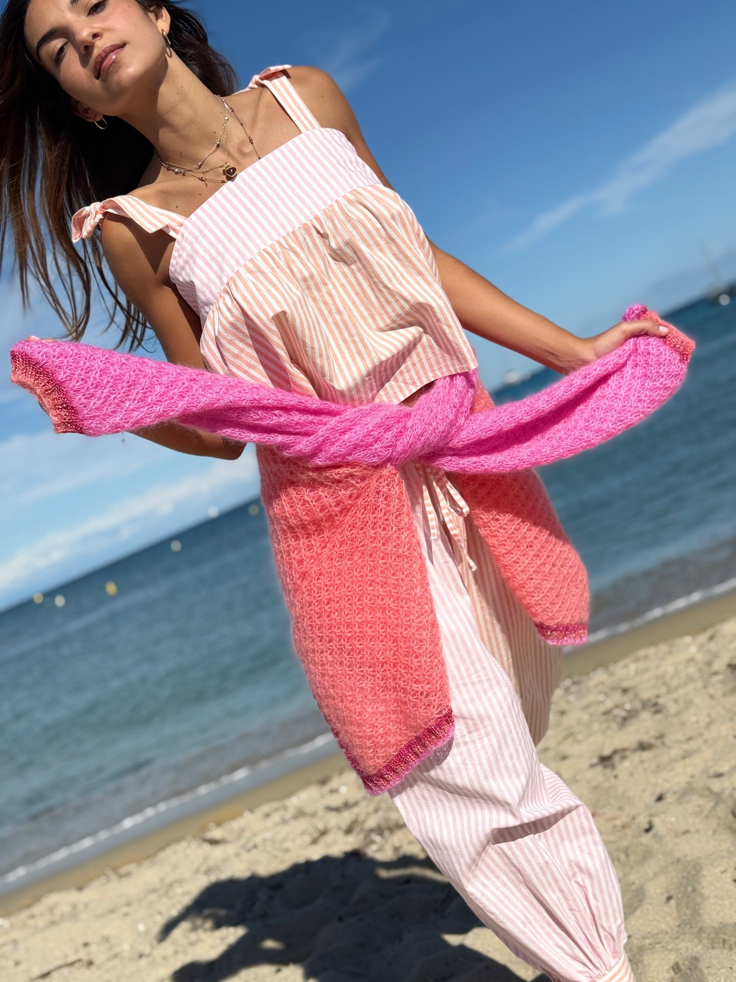 TOP CARACO RAYURES ROSE/ABRICOT