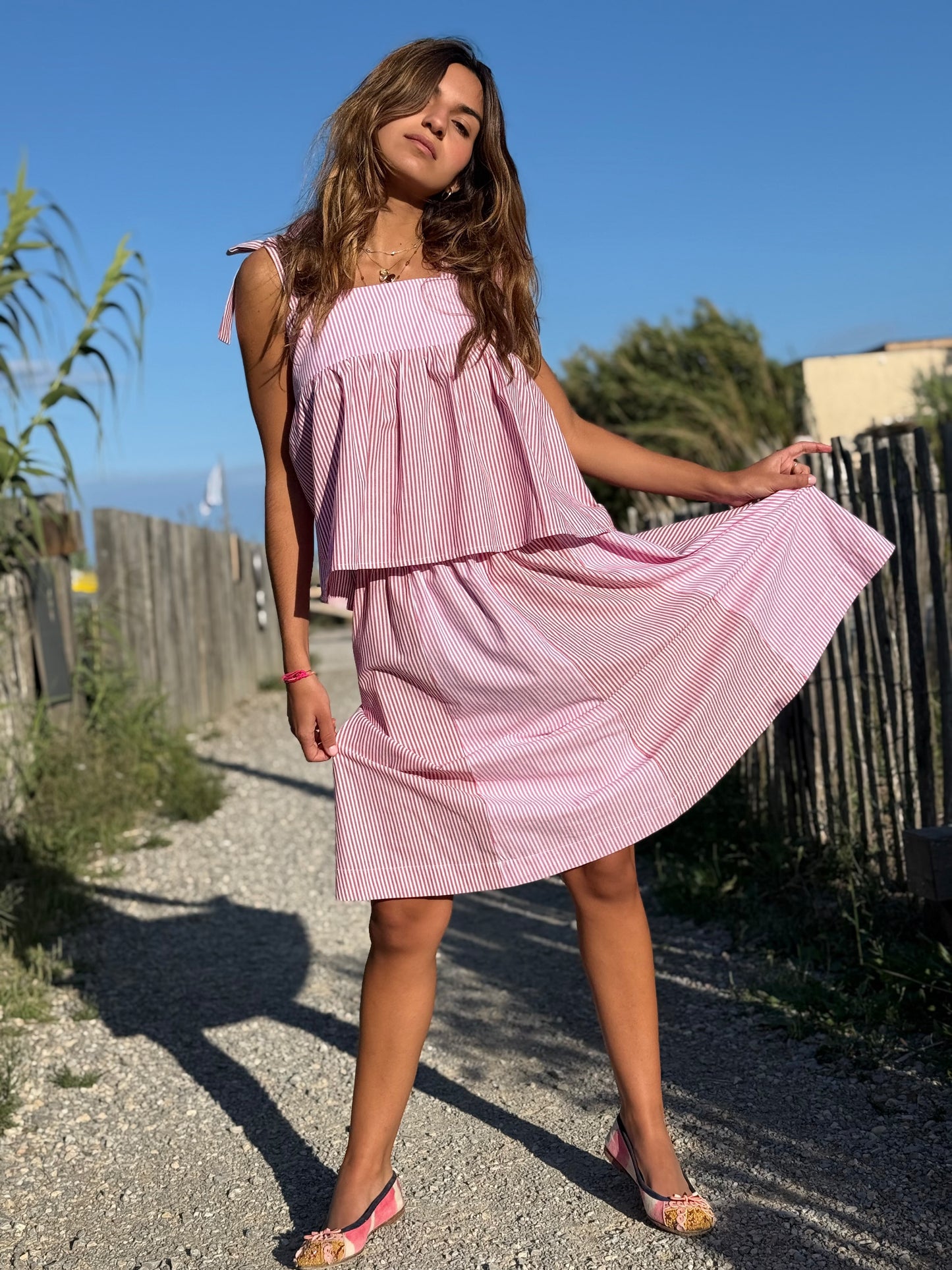 JUPE RAYURES ROUGE/FUSHIA